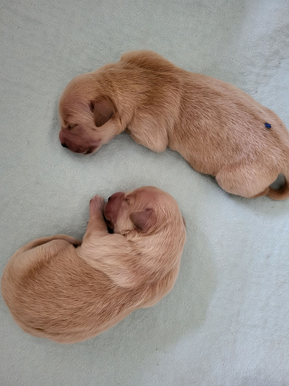 Die Kleinen entwickeln sich so schnell. Alle neun haben schon gut zugenommen, die kleinen Ballen und Näschen werden schwarz und Holly kümmert sich rührend um ihre Welpenschar.